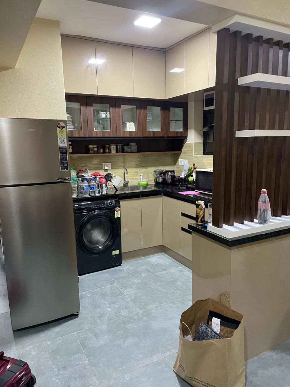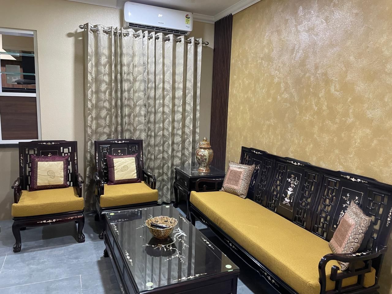 9 th Floor, Full furnished, 850 sqft, Foundation Structure Car Parking Soft & Hard Landscaped Garden RCC Structure on deep pile foundations Covered Parking 1200 x 600 Designer Tiles Berger Bison Total Care or Equivalent EV Charging Points - 3 Nos Kitchen shall be bare Kitchen (without any RCC Slab/Steel Structure, Counter Top, Steel Sink & Faucet) • Inlet Points for Sink cock & Water Purifier • Provisions for Washing Machine & Dish Washer 1200 x 600 Designer Tiles Pre - Hung Doors from Jacson or equivalent. Iron Mongery Yale or equivalent Electrical Specification : Switches - Honeywell or equivalent • DB & ELCB - L&T or equivalent • Wiring - V Guard or equivalent • AC Points in all Bedrooms • Telephone and TV points in Living Room • No electrical fixtures assumed Sanitary Fixtures : Sanitary Fixtures - Kohler, Jaguar or equivalent & provisions for geysers in all Toilets)